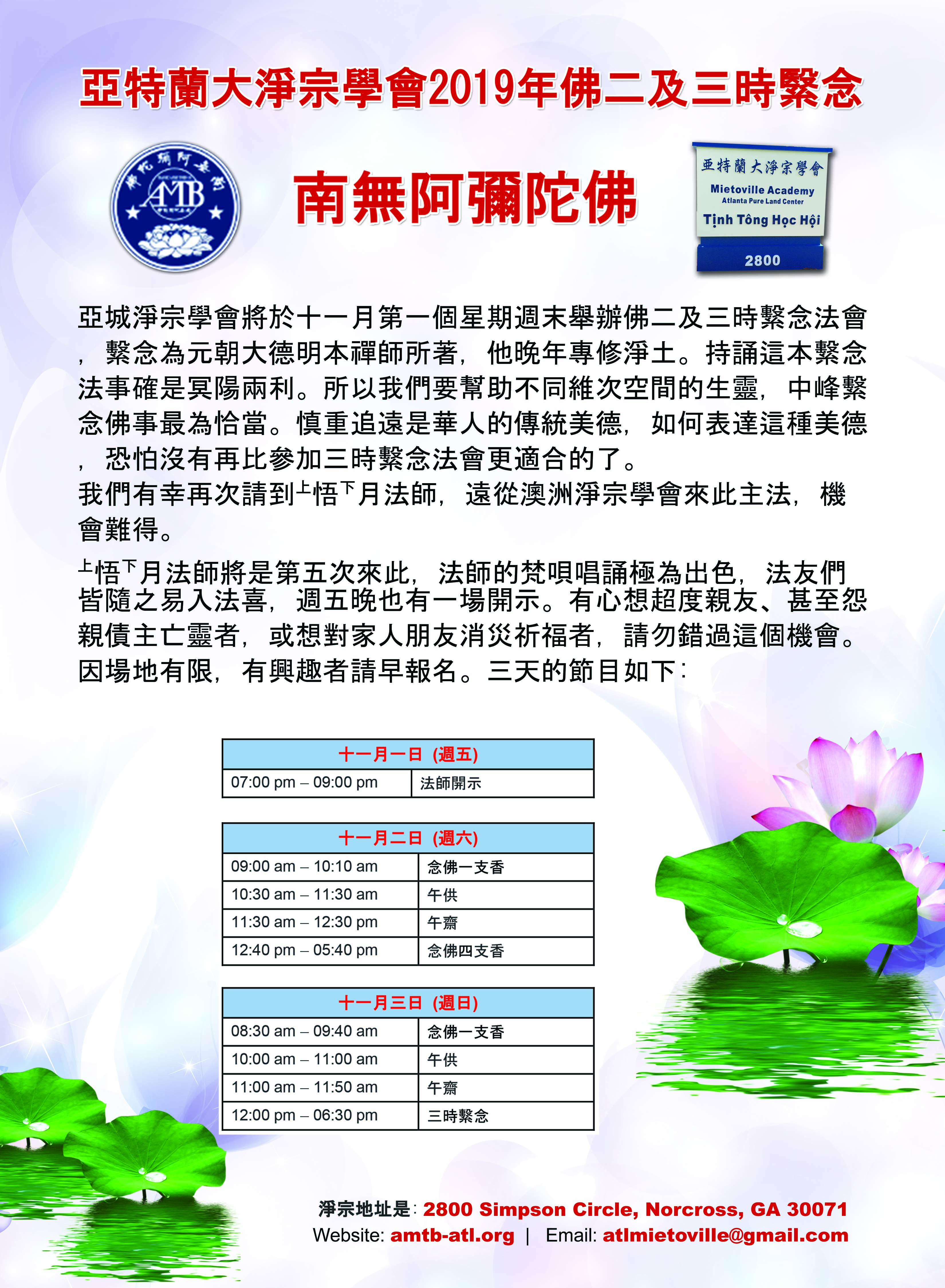 亞特蘭大淨宗學會2019年佛二及三時繫念法會